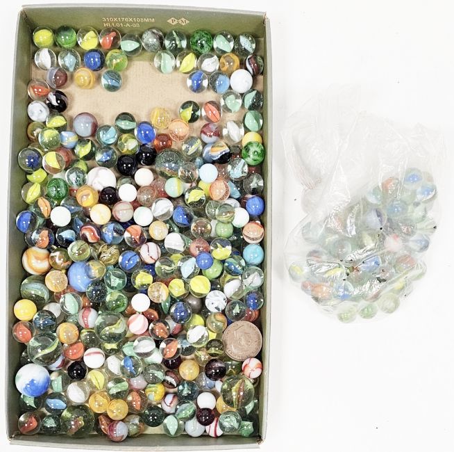 Large collection of glass marbles, of various sizes and colours, largest 2.2cm diameter