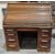 Early 20th century oak rolltop desk, the tambour top opening to an interior fitted with pigeonholes and drawers, the base with two pull-out slides, a central drawer and two pedestals, one with four drawers and one with three drawers, each drawer with a block handle, on a plinth base and castors, 129cm high x 126cm wide x 85cm deep
