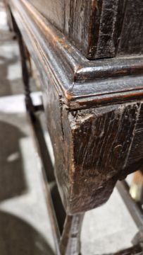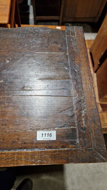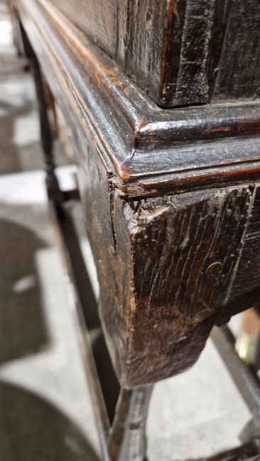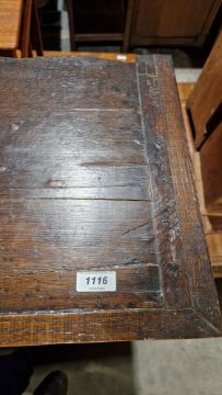Surface scratches, scuffs and knocks. Splits to top and side. Some small chips/losses to the wood in places. Shelf is fixed in place, height from shelf to top of cab 28cm, height from shelf to bottom of cab 24cm. General wear and tear.