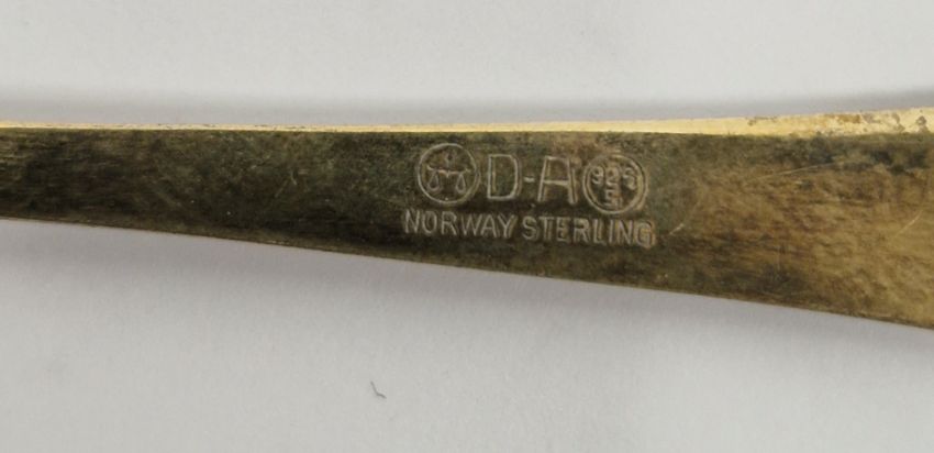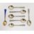 Set of six enamel and silver coffee spoons by Turner & Simpson, Birmingham 1959, the enamelled terminal modelled as the fletching of an arrow and one other silver-gilt and enamel coffee spoon, total weight 2ozt approx