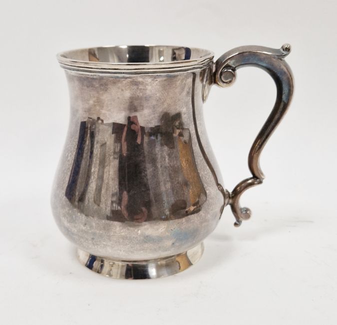 Silver mug by Martin Hall & Co, Sheffield 1923, of plain baluster form with scroll handle, 12cm high, 9ozt approx