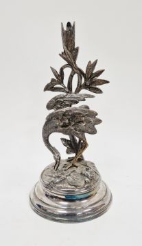 19th century silver plated epergne stand by James Deakin & Sons, cast in the form of a crane bird amongst foliage on a circular base, 25cm high