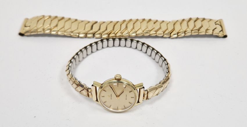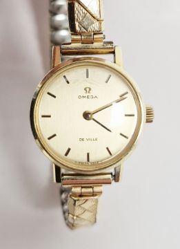 Omega De Ville lady's wristwatch, the polished dial with baton hour markers, on later expanding bracelet, in original box