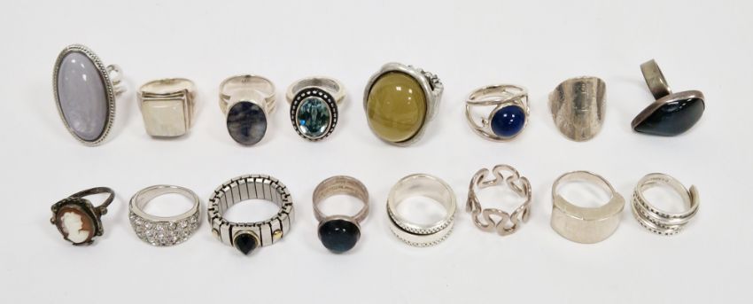 David Andersen Norway silver twist ring, various silver coloured metal hardstone set rings and others similar