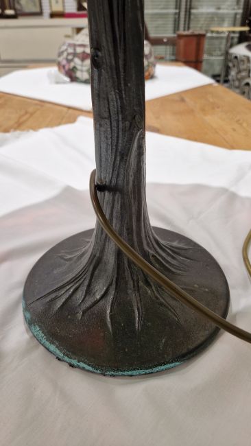 Some marks and accretions. No obvious signs of damage to glass shade. General wear and tear.