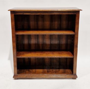 Good quality 20th century oak bookcase in the 19th century manner, the top with thumbmould edge over two adjustable shelves, on short style legs, 99cm high x 91cm wide x 29cm deep