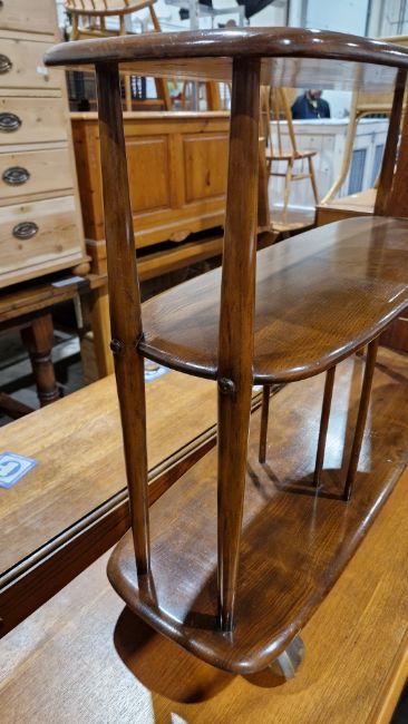 Ercol dark elm and beech Giraffe bookcase trolley, model 361, on castors, 71cm high x 91cm wide x 31cm deep
