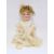 Bruno Schmidt bisque headed doll, no.692 with brown fixed eyes, moulded upper teeth, composition body, 42cm long, an antique bisque shoulderhead doll with kid body and bisque lower arms, brown fixed eyes, moulded upper teeth, wearing cream lace adorned dress and blue cape, 41cm long approx and a reproduction A Thuller bisque doll's head with fixed brown eyes, painted mouth, pierced ears (head only), 9.5cm long (3)