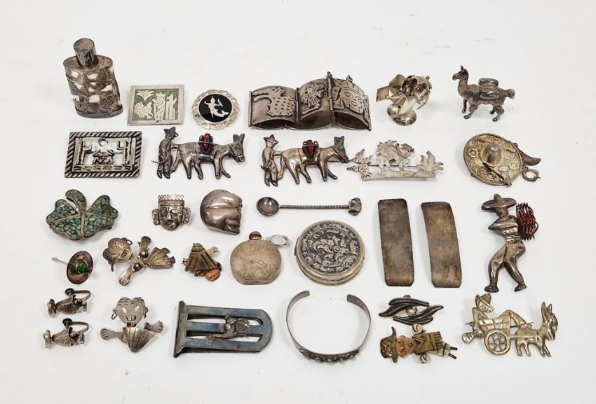 Taxco 925 silver-coloured metal panelled bracelet, Mexican silver-coloured metal and similar brooches and other white metal items
