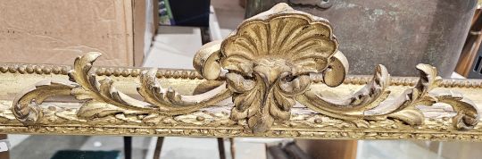 19th century giltwood and gesso overmantel mirror of rectangular form, having shell and foliate scroll cresting, moulded frame and foliate scroll carving to sides, 94cm high x 100cm wide