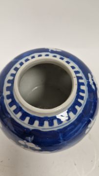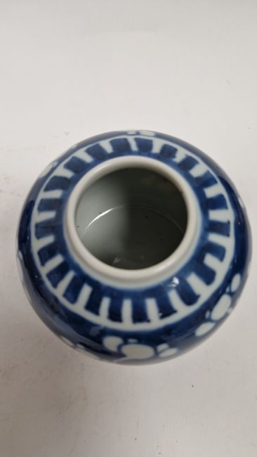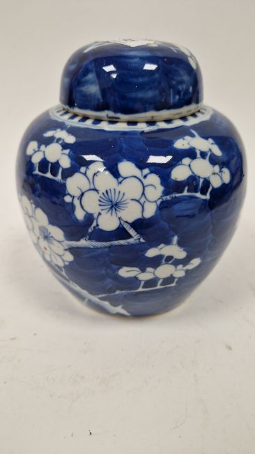 Smaller jar with chip and crack to cover. General wear and tear to both.