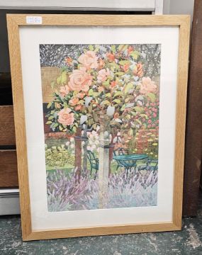 Four Alexandra Churchill farm animal prints including sheep and pigs, largest 28cm x 39cm, all framed and glazed, a still life floral watercolour signed Doris Peter and five further watercolours and prints (10)