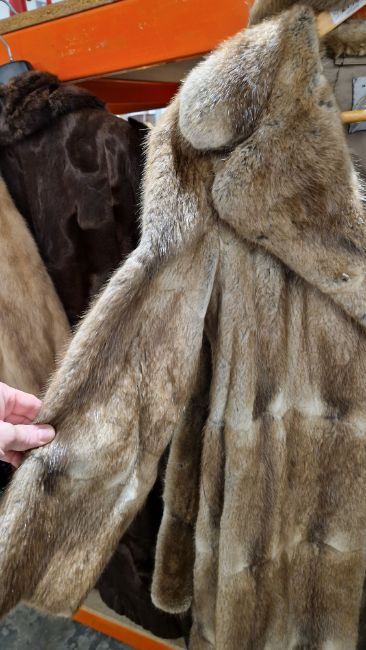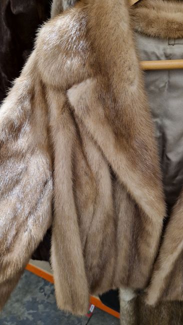 Short mink jacket, a vintage fur coat labelled Made Especially for Cavendish House with tie belt and a brown vintage fur coat, possibly goat or pony (3)