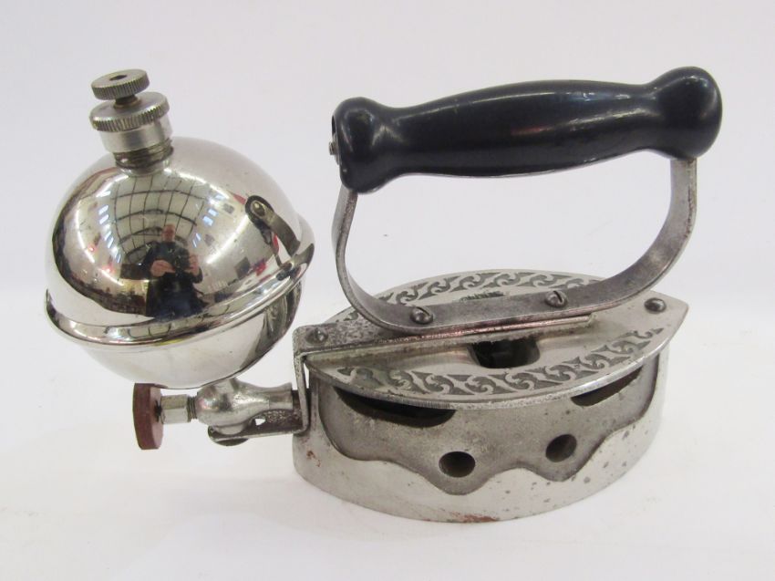 Coalbrookdale Iron Co Boyertown PA.USA iron with cast iron base and turned wooden removable handle, 16cm wide, another iron and three iron trivets to include 'I WANT You Comfort Iron' trivet x 2 and 'Enterprise M.F.G.Co Phila.USA', a mid to late 19th century 'Geneva Hand Fluter' in cast iron with base, 14.5cm x 9cm, Sensible no.5 iron with removable handle, Sensible no.4 iron with removable handle, a Colman no.4 self heating gasoline iron and three iron trivets
