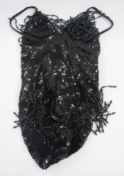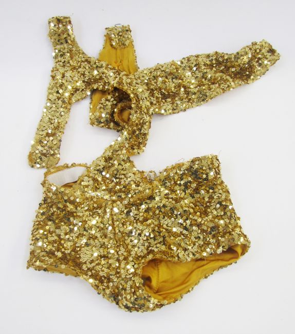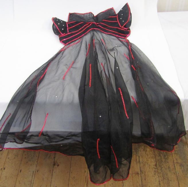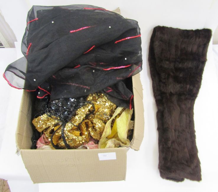 A vintage squirrel stole and a quantity of fancy dress items, chiffon, sequins, lame, etc. (1 box)