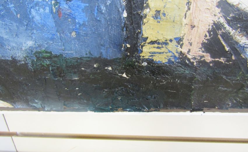 This painting has paint loss and flaking in several areas - the three pictures in the catalogue are just a representative sample.
