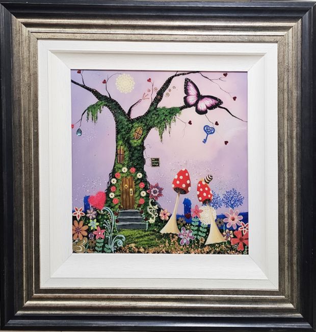 Mystical World "The Dreamers Cottage", coastal flowers and cottage in tree, 39cm square