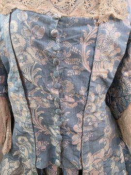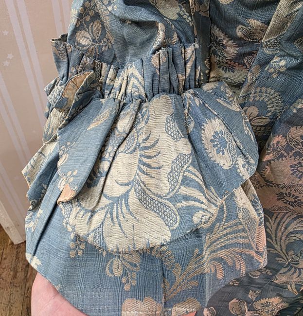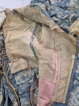 There is a mixture of hand and machine sewing to the top of the skirt.