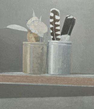 "Feathers and Seedheads", initialled and dated 74, labelled verso, 15cm x 12.5cm
