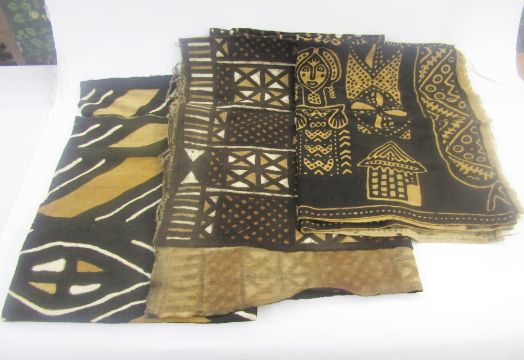 Papua New Guinea tapa - bark cloth, three pieces, small piece 37 x 40.5 approx, medium piece 98 x 50cm approx, large piece 185 x 143cm approx, and Bogolan - mud cloths from Mali, three different sizes, two are strips stitched together, 130 x 189.5cm, 104 x 167cm and 120 x 181cm approx (4)