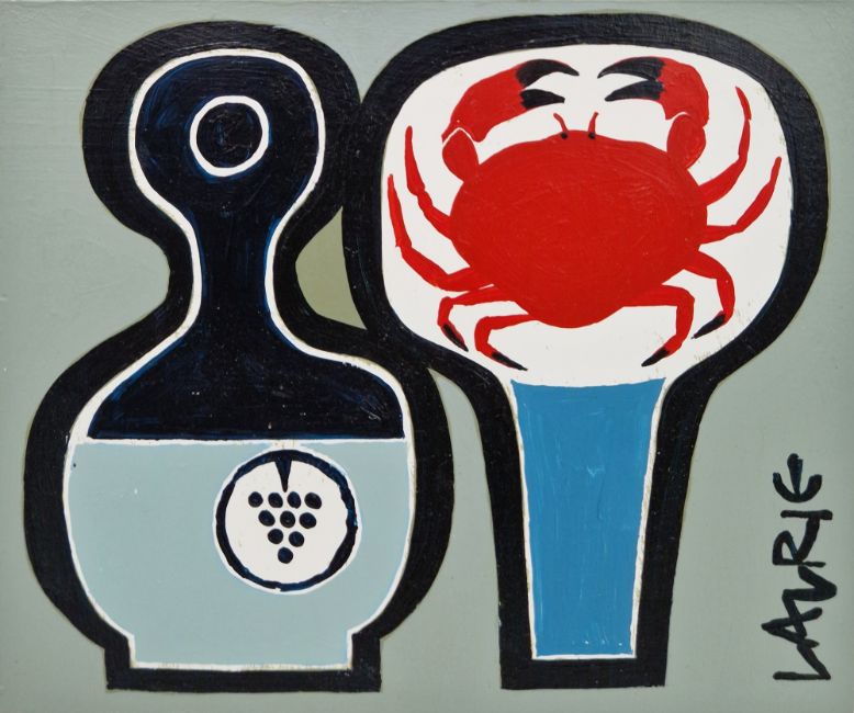 "Crab and Wine", signed lower right, 13cm x 15.5cm, bears Freya Mitton gallery label verso
