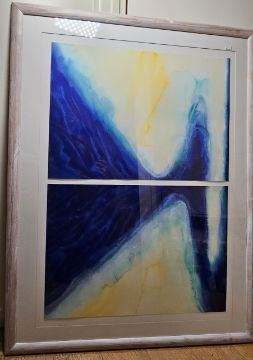 Pair abstract watercolours framed as one