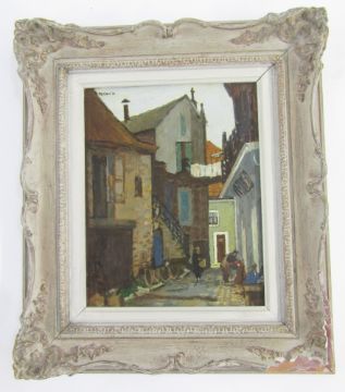 "Backstreet, Bugue, Perigord", signed and dated 81 and labelled verso, 30cm x 24cm