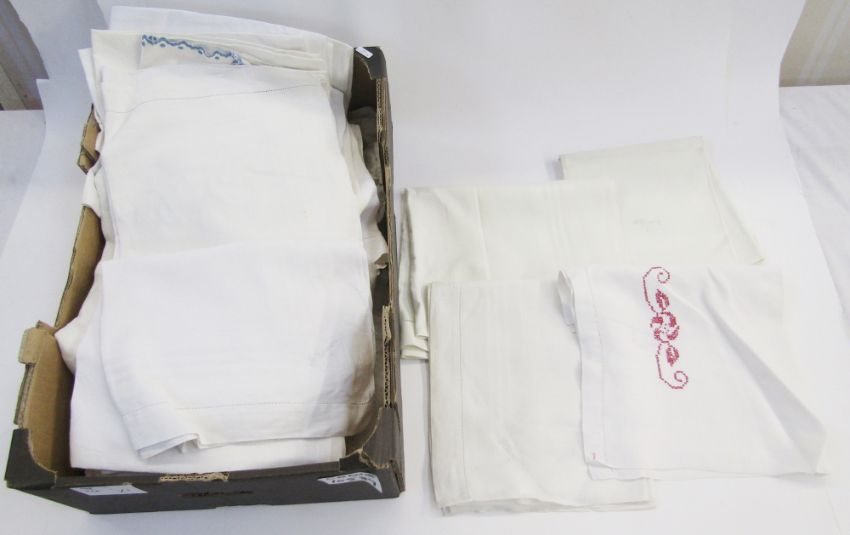 A large quantity of vintage hand towels, table linen etc. (1 box)