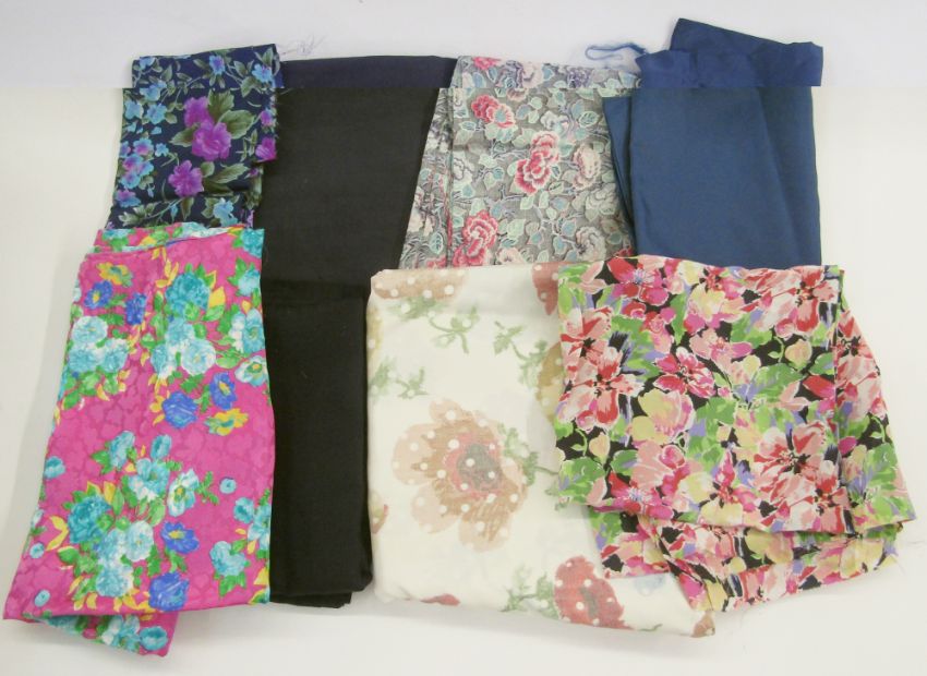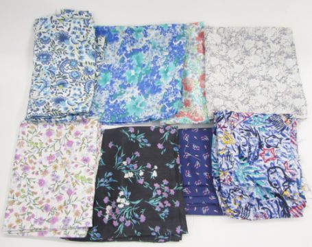Liberty and similar fabrics, remnants and pieces, all with their measurements (1 box)