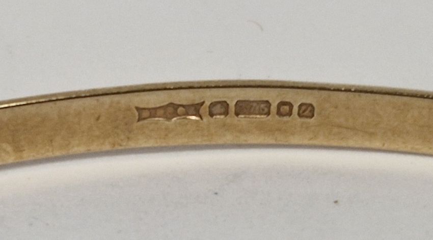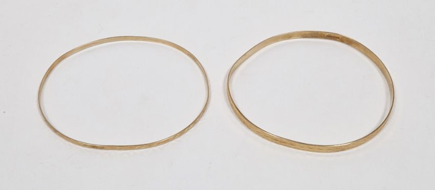 9ct gold bangle with diamond cut decoration and another similar 9ct gold bangle, total weight 8g approx (2)