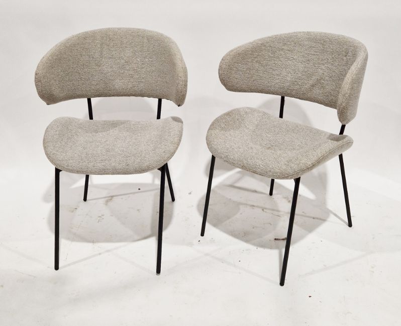 Pair of Wera dining chairs, the curved backs and seats upholstered in a natural fabric, on black steel frames, 85cm high x 58cm wide x 62cm deep (2)
