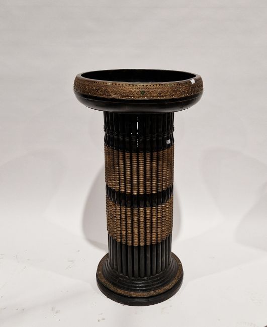 Eastern black and gilt painted cluster column jardinière stand with embossed circular raised border to the top, 103cm high x 54cm diameter
