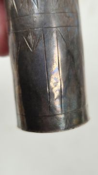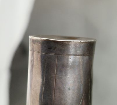 William & Mary silver nutmeg grater, maker's mark only, possibly John Albright, of cylindrical form, the body with scratch engraving and initialled HS to base, the pull-off cover decorated with a tulip and containing tinned steel grater, 6.5cm high, 33g approx  Provenance:  Hicks Beach Estate.  The majority of pieces in this collection originate from Williamstrip, Coln St Aldwyn, family seat from 1788 to 2008 and thereafter Mill House, Coln St Aldwyn.  Sir Michael Hicks Beach, Bt, succeeded his father as 9th Baronet of Beverston in 1854.  He became a Conservative Member of Parliament in 1864 and served twice as Chancellor of the Exchequer, from 1885 to 1886 and again from 1895 to 1902.  In 1906 he was raised to the peerage as Viscount St Aldwyn and in 1915 became the first Earl St Aldwyn. Condition Report Light surface scratches, accretions and tarnishing. Some very small dents to side and base. General wear and tear.