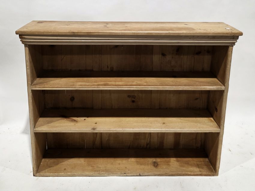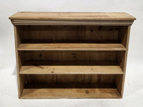 Late 19th/early 20th century pine dresser top with two shelves, 91cm high x 118cm wide x 25cm deep