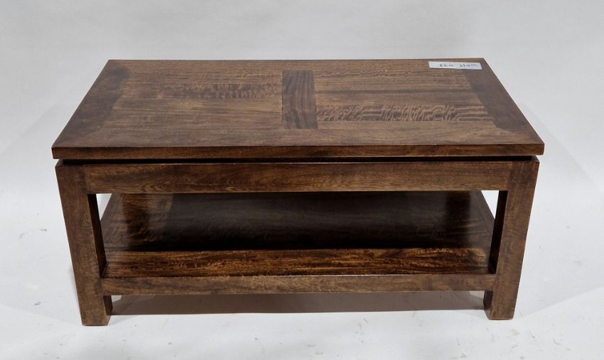 Modern hardwood coffee table of rectangular form, on square legs with undershelf, 48cm high x 102cm wide x 52cm deep