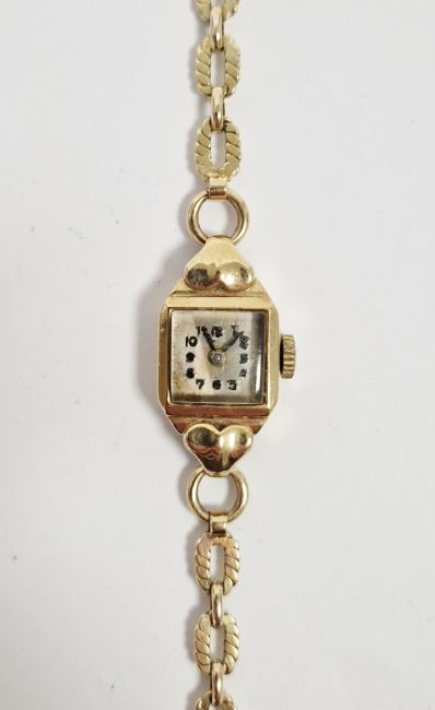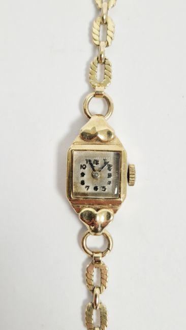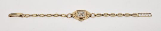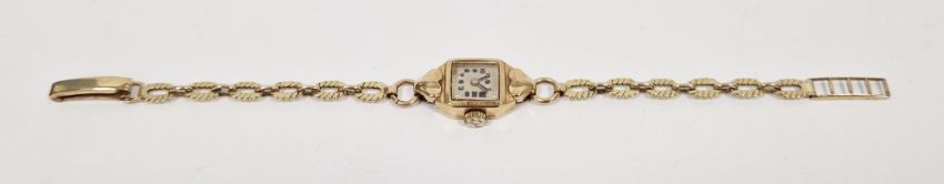 Lady's 9ct gold wristwatch, mid-20th century, on 9ct gold oval flat link bracelet, 11.8g approx total