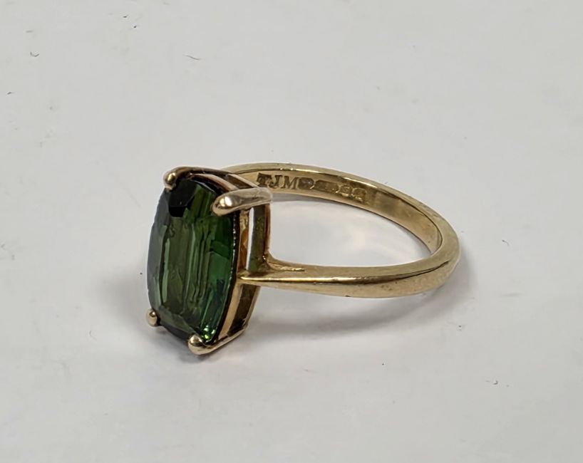 18ct yellow gold and green tourmaline ring, claw-set with a mixed cut oval tourmaline (approx.11.75mm x 7.44mm), size N 1/2, approximate weight 4.1 grams