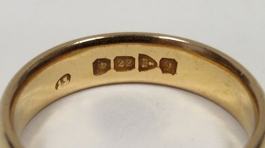 22ct gold wedding band, finger size N, 6g approx