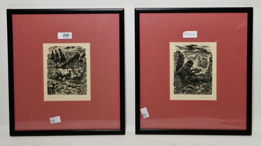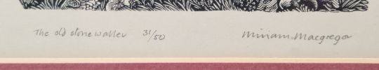 Miriam MacGregor  Two woodcuts "The Old Stone Waller", 31/50, signed in pencil and "Miss Hooper's Garden", 49/50, both signed and titled in pencil, 15cm x 12cm
