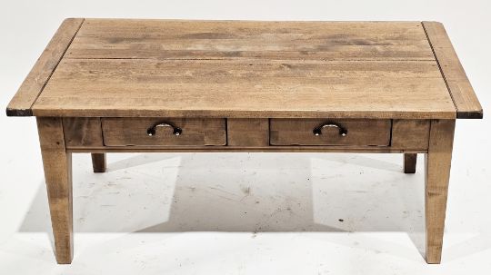 Modern hardwood coffee table, the rectangular top over two frieze drawers, on square tapering legs, 48cm high x 111cm wide x 60cm deep