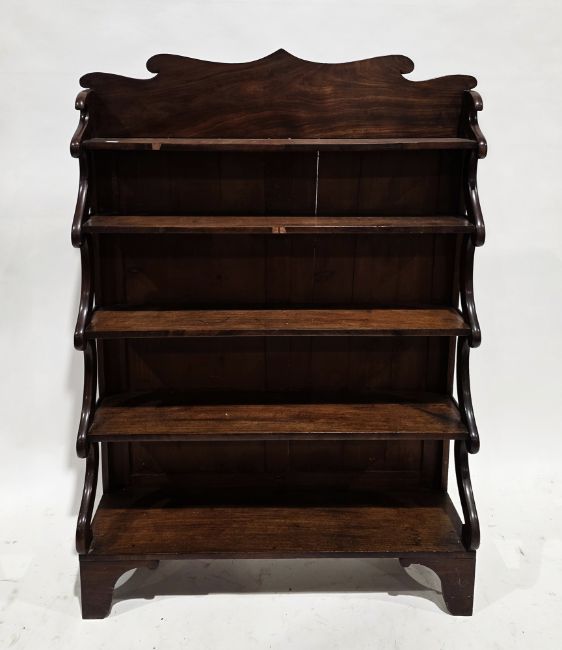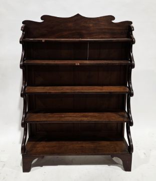 Early 19th century mahogany waterfall bookcase, with shaped top rail and scrolling supports to sides, on bracket feet, 135cm high x 92cm wide x 30cm deep