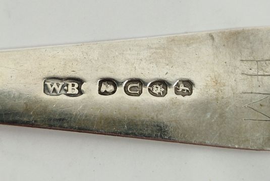 Georgian silver tablespoon and a teaspoon, the first London, 1815, maker's mark for William Bateman, the teaspoon hallmarks rubbed, approx. 2 ozt (2)