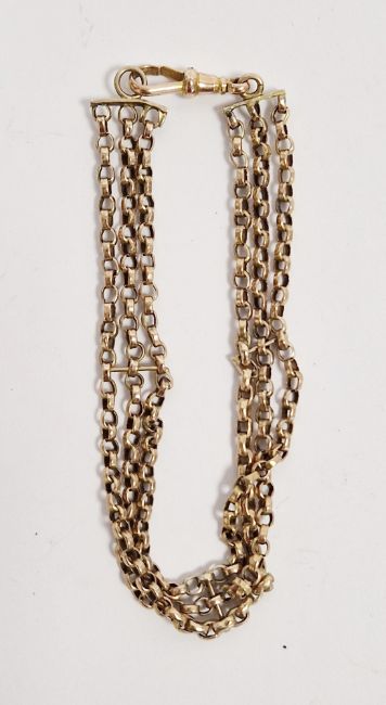 Gold-coloured bracelet, unmarked, modelled from a three chain belcher link watch chain, 6.1g approx