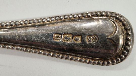 Matched set of 12 silver teaspoons, mainly Charles Boyton, London, various dates, circa 1900, all with bead borders and engraved LRBF Co, in fitted case, a set of six silver coffee spoons with rectangular finial and another set of six silver teaspoons, all in fitted cases, total weight 16ozt approx