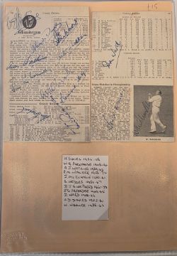 Glamorgan County Cricket Club, collection of assorted press cutting photographs, signed ephemera, a signed cutting to include the signatures of H. Davies, W.G. Parkhouse, A.J. Watkins, P.M. Walker, J. McConnon, B. Hedges, W. Wooler, etc. Matthew Maynard signed photograph, Colin Metson etc. (1 folder) (please note VAT will be payable on the hammer)
