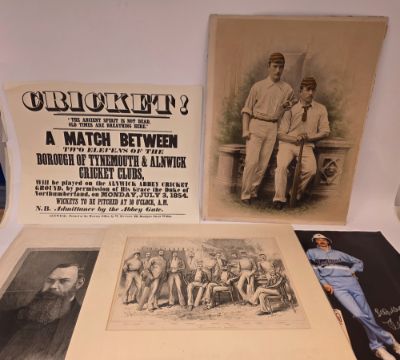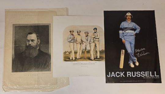 "Mr Unwin Often Gave Me Advice on How to Distract the Bowler", signed and dated 84, 158/200, 74cm x 53.5cm overall (unframed) and various cricketing photographs, posters and prints (please note VAT will be payable on the hammer)